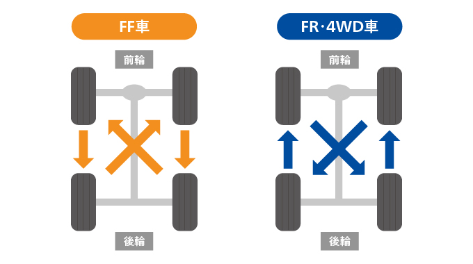 タイヤは装着されている位置によって、かかる負荷が違います。