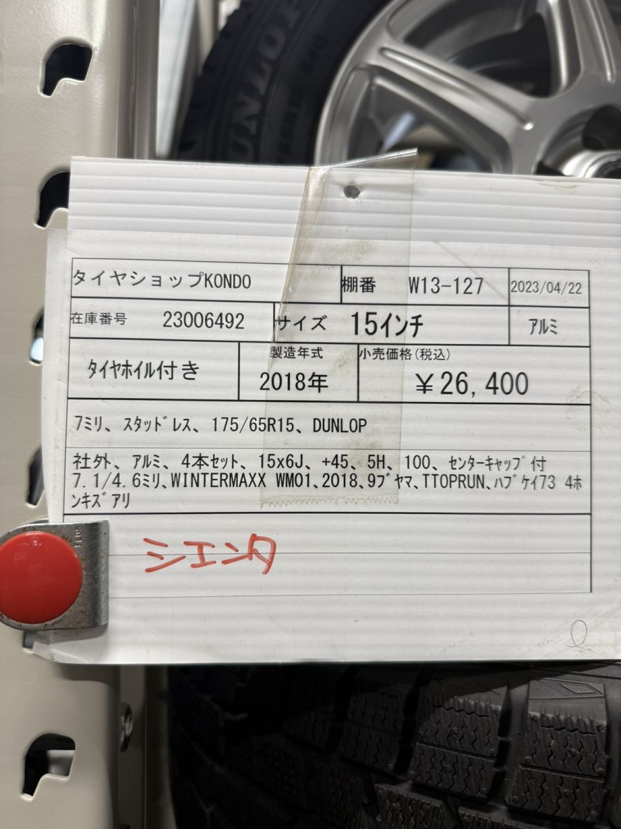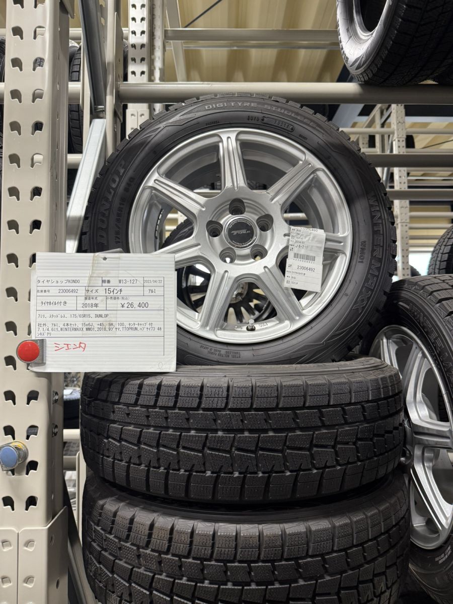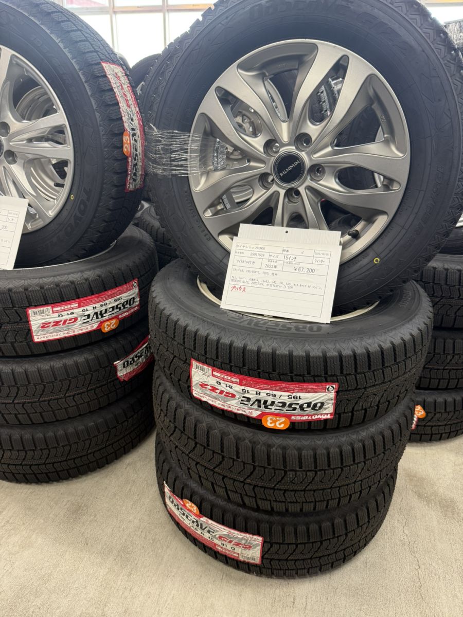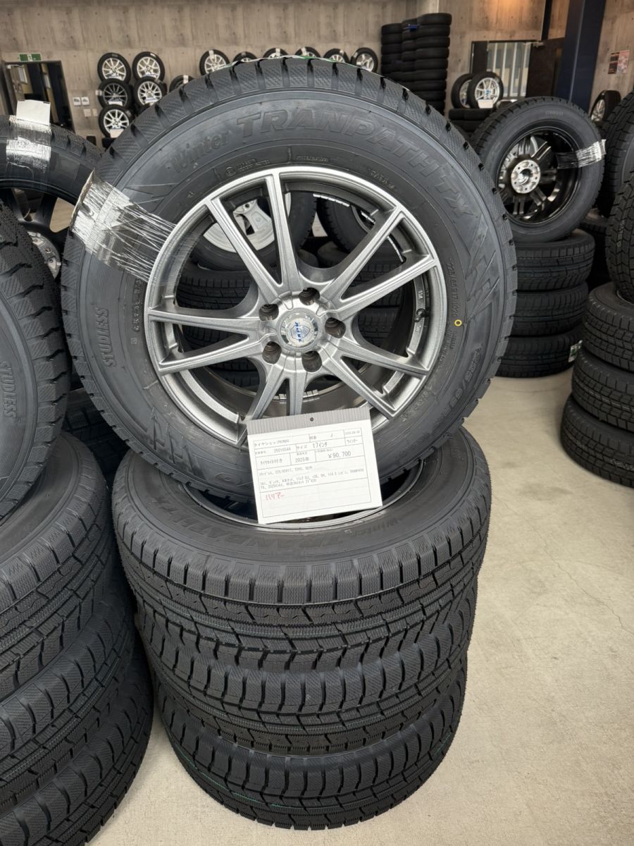 スタッドレスタイヤ+アルミホイール4本セット店内在庫のご案内です。新品旧型のタイヤが中心です。(一部、中古タイヤや最新在庫も含みます。)