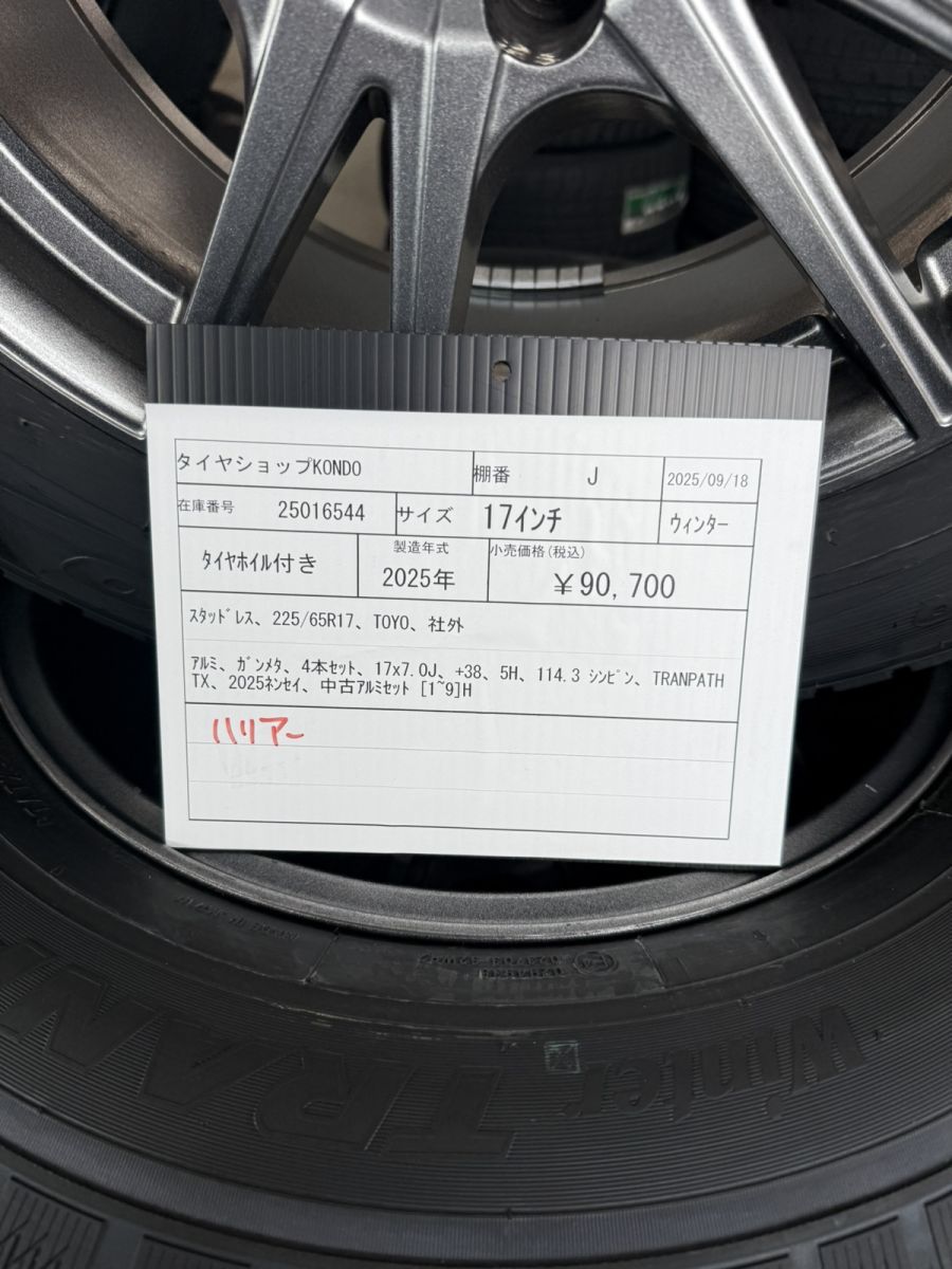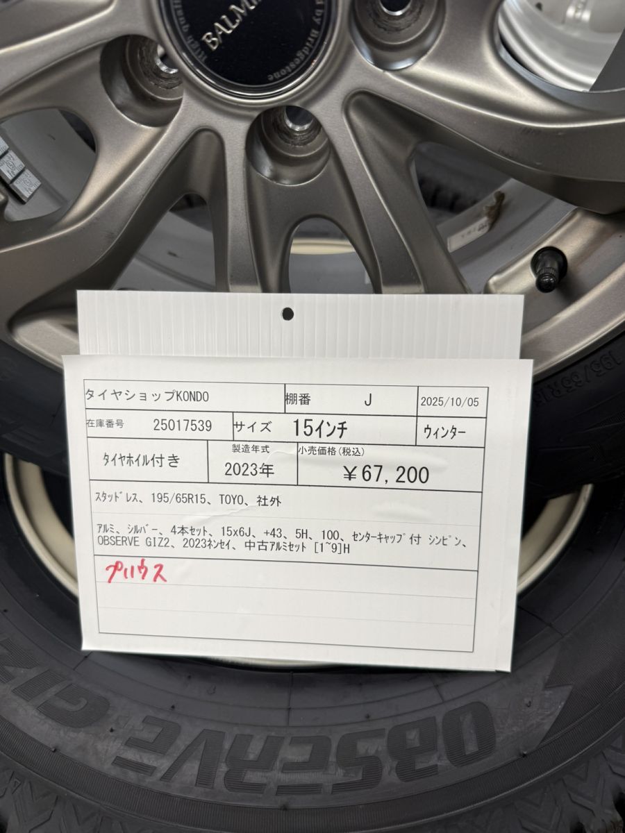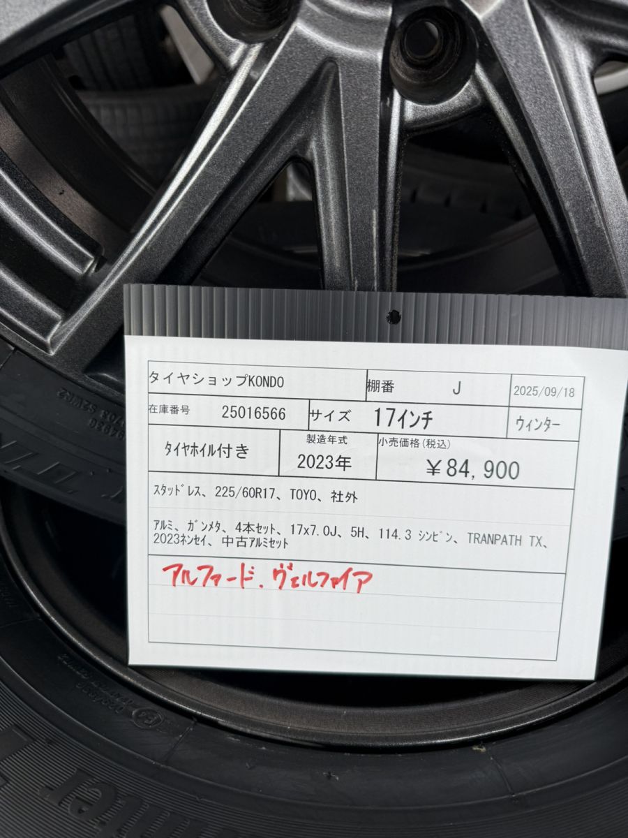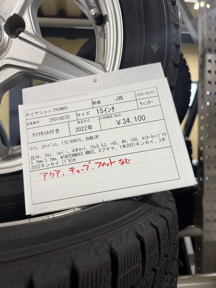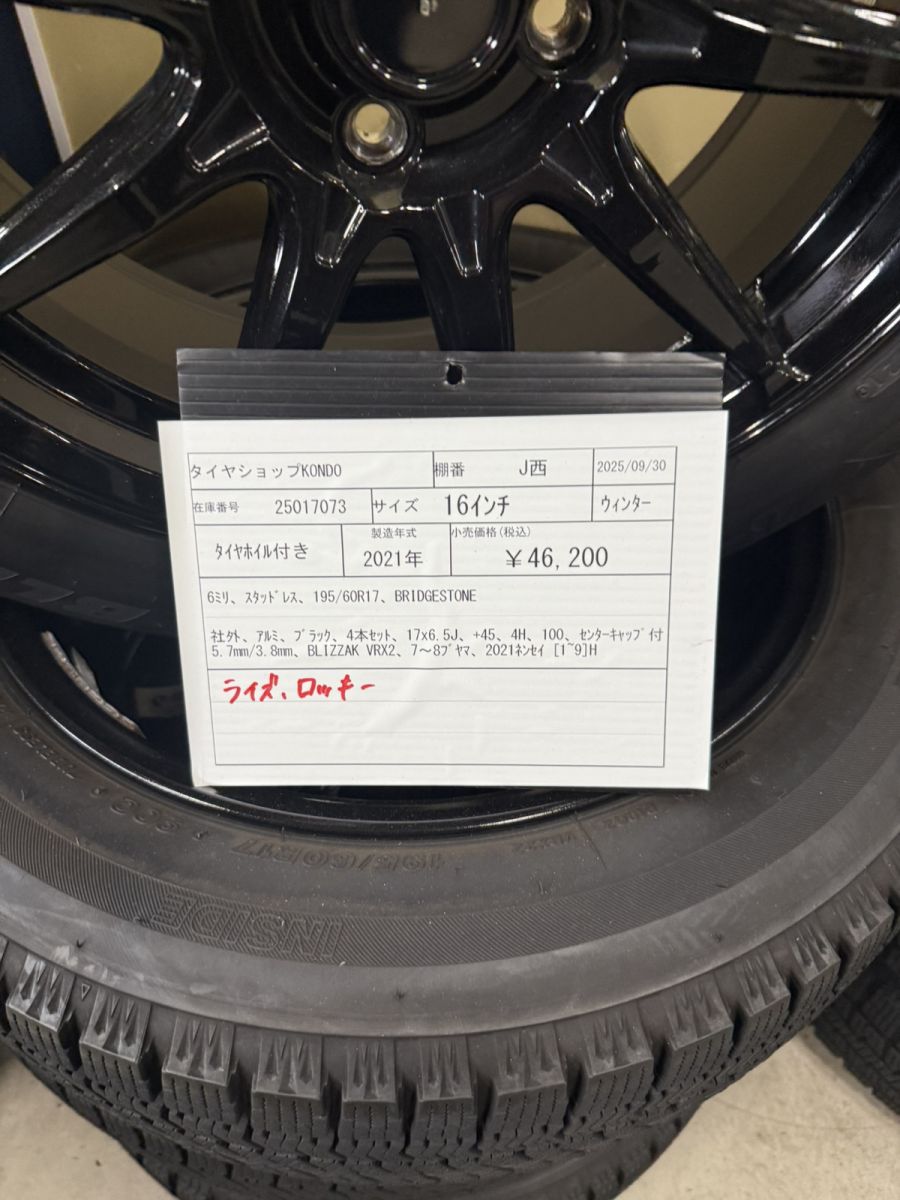 スタッドレスタイヤ+アルミホイール4本セット店内在庫のご案内です。新品旧型のタイヤが中心です。(一部、中古タイヤや最新在庫も含みます。)