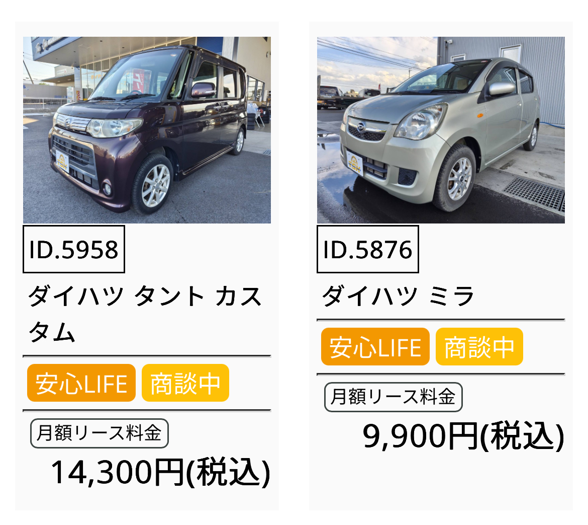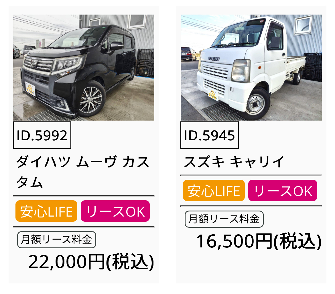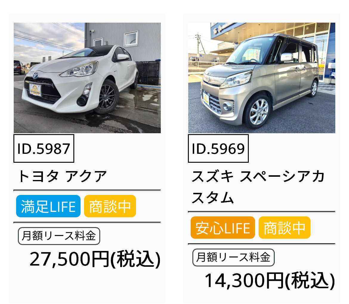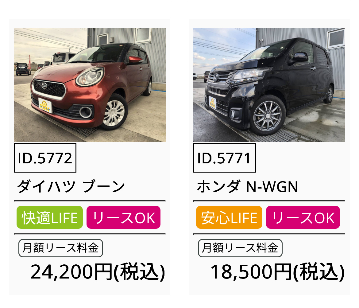 岐阜/愛知の中古車リース[リボーンカーリース岐阜西]2025年11月現在の貸出可能車両のご紹介