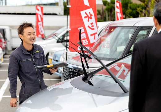 購入後も安心!お客様の快適なカーライフを守る地域密着型のカーライフショップとして、車検・点検や修理、自動車保険やお車の乗り換え相談まで、車のことならどんなお悩みでも末永くサポートしていくことをお約束します!